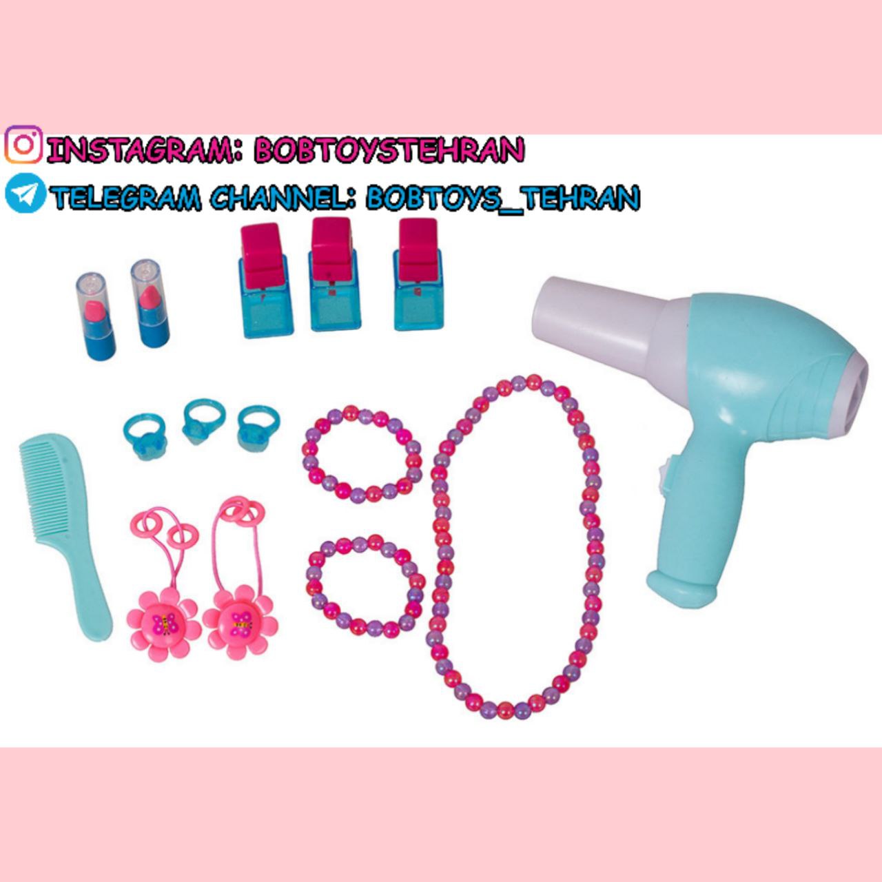 *شامل:سشوار(با باتری کار می کند، هوا از آن خارج می شود و صدای سشوار دارد)، گردنبند، دستبند، شانه، رژ لب و...